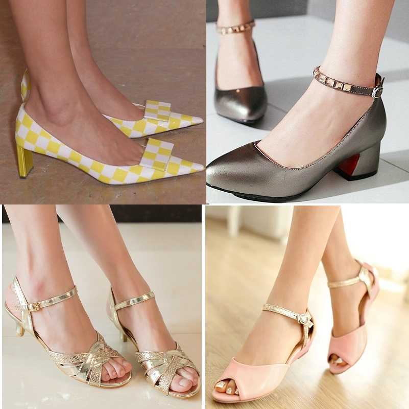 В данном случае у вас есть и устойчивость, и высота. Выглядит более кокетливо чем низкие, но при этом целомудренно. Туфли средней высоты отлично смотрятся с открытым мыском, с коническим каблуком, с ремешками на щиколотке и пятке. Подобная обувь будет уместна в офисе и на неофициальной вечеринке.