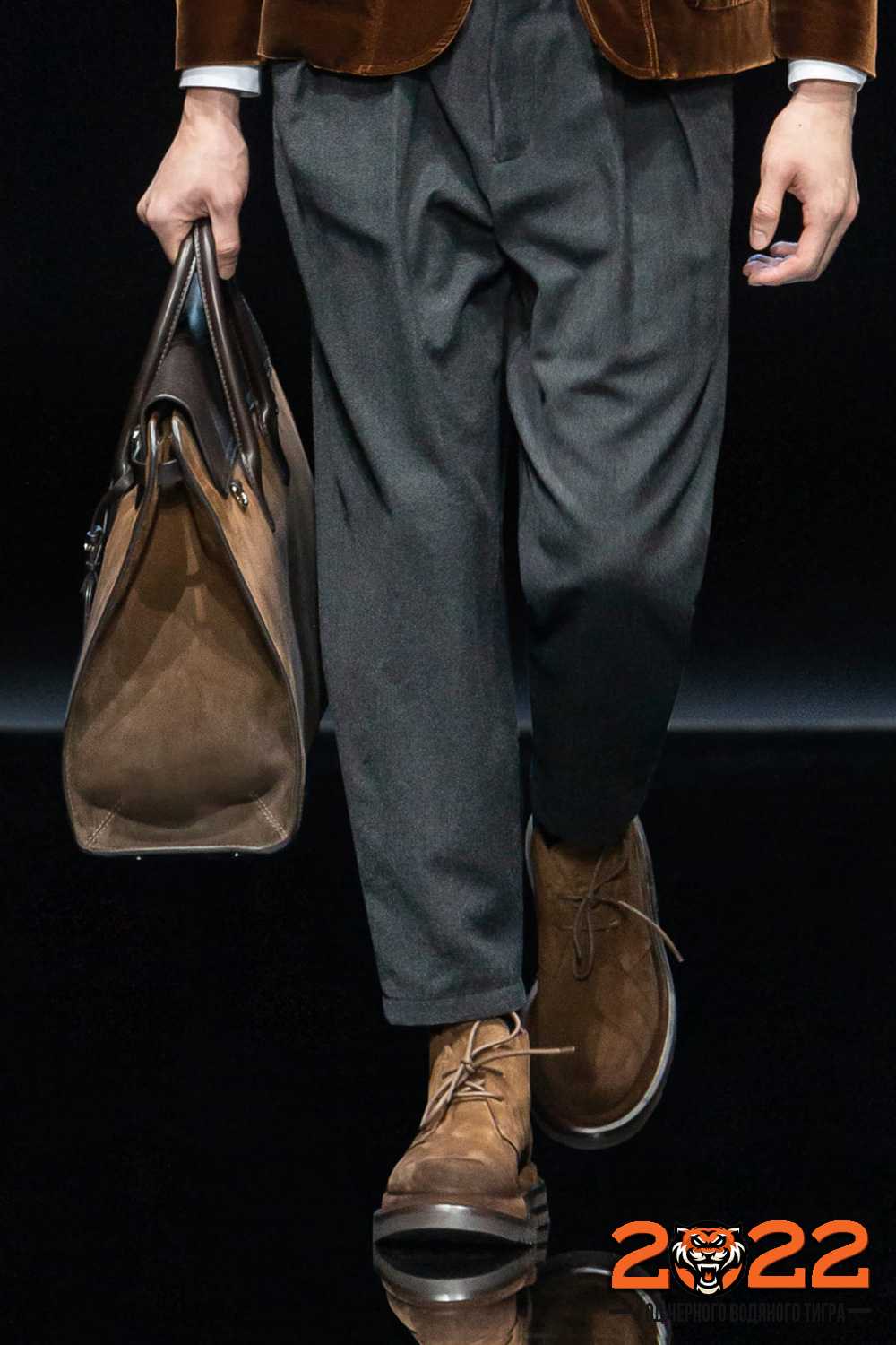 По мнению стилистов и дизайнеров, в гардеробе современного мужчины должно быть как минимум 2-3 пары модных ботинок из разных материалов. Интересные идеи на 2022 год можно почерпнуть в коллекциях Armani, Brioni, Kiton.