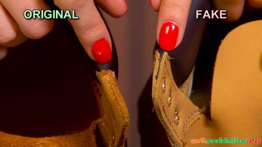 Внутри изделие должно иметь специальные стельки «анти-стресс», чего нет у подделок. Задник ботинок должен быть изготовлен из кожи по специальной технологии, обеспечивающей удобную фиксацию ноги в ботинке.