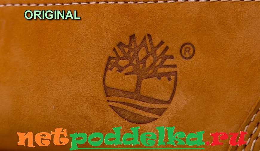 Изучение логотипа ‒ еще один способ как отличить оригинальные ботинки Timberland. Он должен быть нанесен методом тиснения или выжигания. Использование краски, наклеек или вышивки логотипа характерно лишь для подделок.