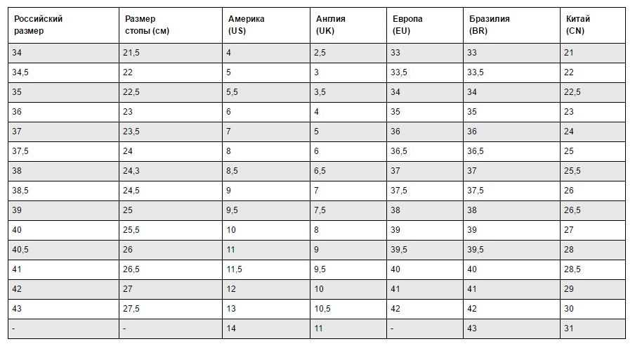 Если для взрослых интервал размерного ряда составляет пару см, то для детей он равен 1 см. В таблице даются значение сразу чётных и нечётных размеров, потому что не всегда представляется возможным найти в продаже нужный. Для ребёнка лучше выбрать чуть больший размер.