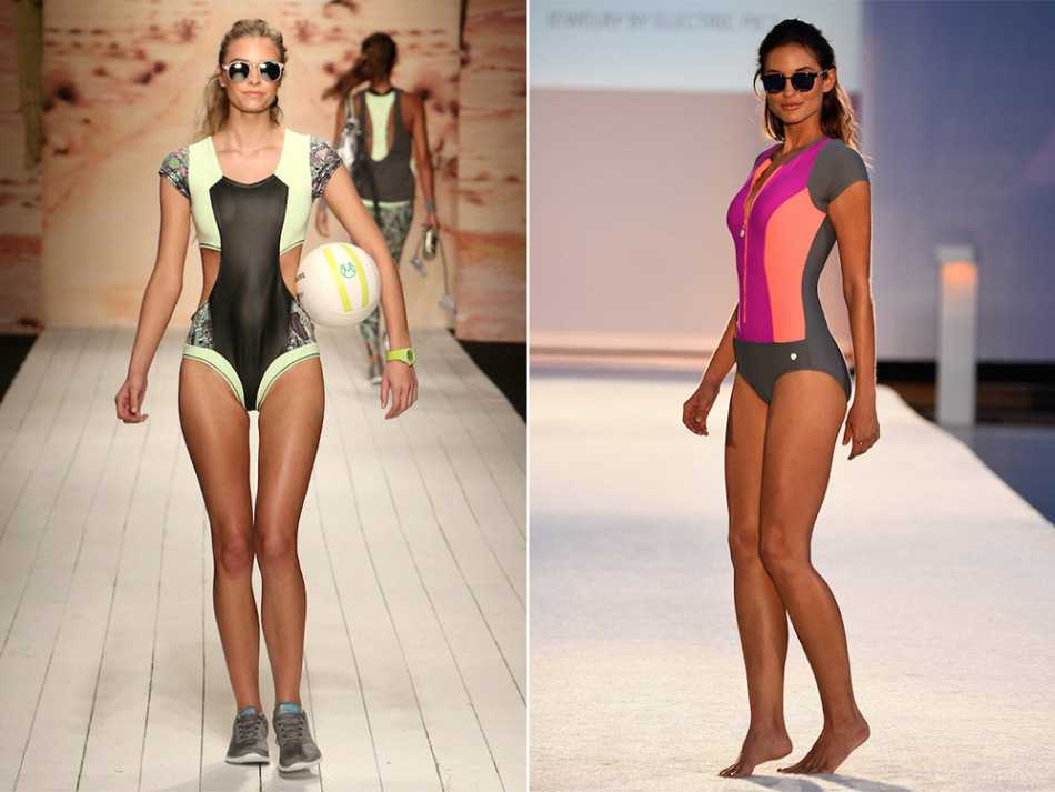 Сначала сложно понять, эта модель раздельная или слитная, но всё же его относят ко второму типу. Особенностью яыляются вырезы по бокам. Очень необычно смотрится, поэтому попал в тренды.