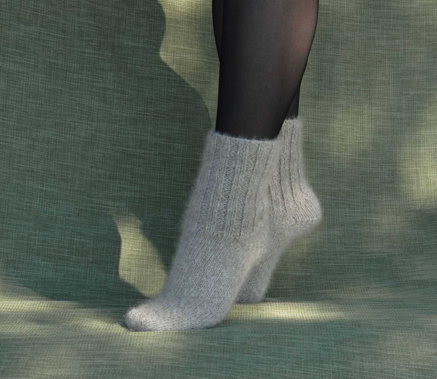 Не закрывающие щиколотку, укороченные модели удобны тем, что их легко сочетать с любой одеждой и даже с укороченными брюками. Такие носочки не будут видны из обуви, поэтому их можно сочетать с разными моделями туфель, кроссовок, ботильонов. Если короткие носочки выполнены из собачьей шерсти, то они будут оказывать еще и лечебный эффект.
