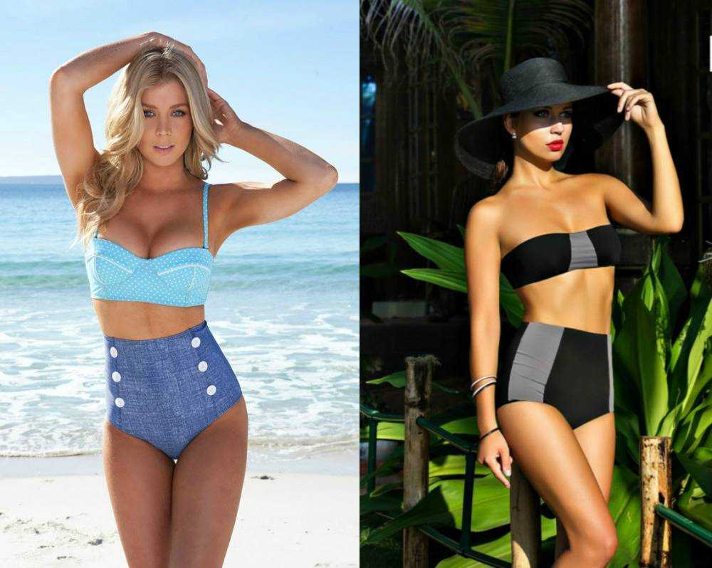 Костюмы могут быть закрытыми или раздельными. Характерные особенности заключаются в высокой посадке трусиков, лиф при этом по форме похож на исподний бюстгальтер. Как правило, верхняя часть имеет бретели, однако есть варианты без них. Подходят модели ретро практически на любую фигуру. Они отлично скрывают широкие бедра и обвисший живот, уравновешивают пропорции тела, визуально увеличивают грудь, вытягивают силуэт. Популярность тренда объясняется тем, что в моду вновь возвращаются веяния прошлых десятилетий. Оригинальные расцветки, принты в горох или полоску смотрятся ярко и женственно.