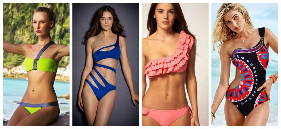 Асимметрия – этот тренд уже успел укорениться в моде за последние несколько сезонов. Купальники такого дизайна могут быть как слитными, так и раздельными. Главная особенность – наличие бретели на одно плечо или асимметричного выреза сбоку