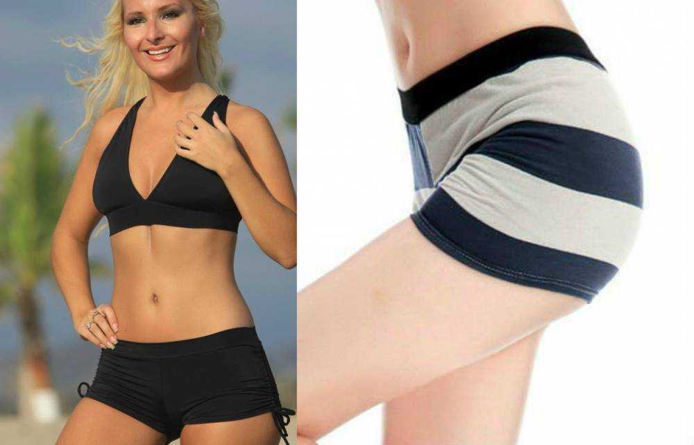 Название женских трусов такого формата образовано от соединения свойств шорт и стрингов. Такие модели обладают треугольником ткани, которая располагается впереди. В то же время широкое основание прикрывает ягодицы и бедра. Шортики-стринги обладают специальной утягивающей резинкой, позволяющей скрывать недостатки в области талии, что позволяет делать фигуру более изящной.