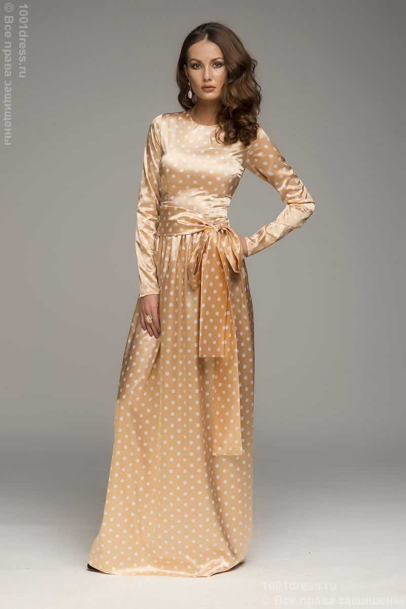 - платье в пижамном стиле – взглянув на такую вещь сложно сказать что перед вами платье или комбинация. Пижамный стиль постепенно вторгается в повседневные образы, превращая женщин в таком наряде в пример для подражания. В бежевом цвете красиво выглядят шелковые платья, повседневные фасоны, дополненные свитерами с крупной вязкой или кардиганом.