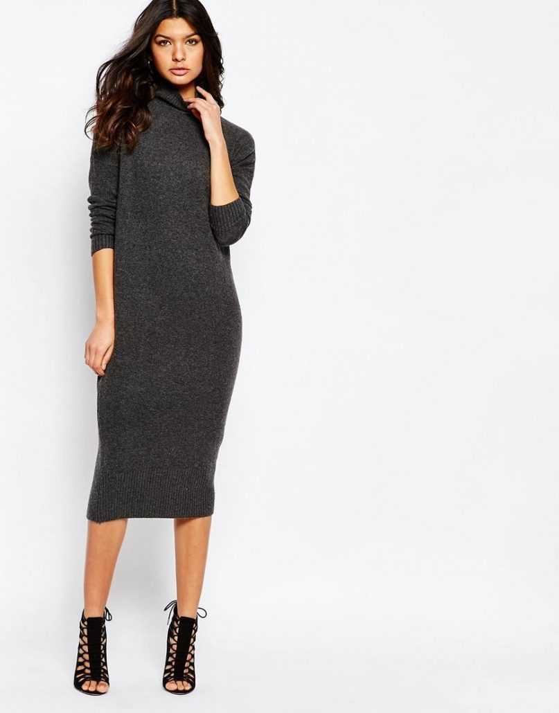 А вот с чем не стоит носить вязаное платье, так это с балетками, сандалиями, классическими моделями туфлей или босоножек.