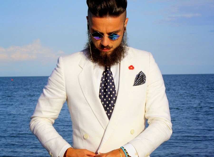 Галстук в горох с белой рубашкой и белым костюмом: горох под цвет рубашки