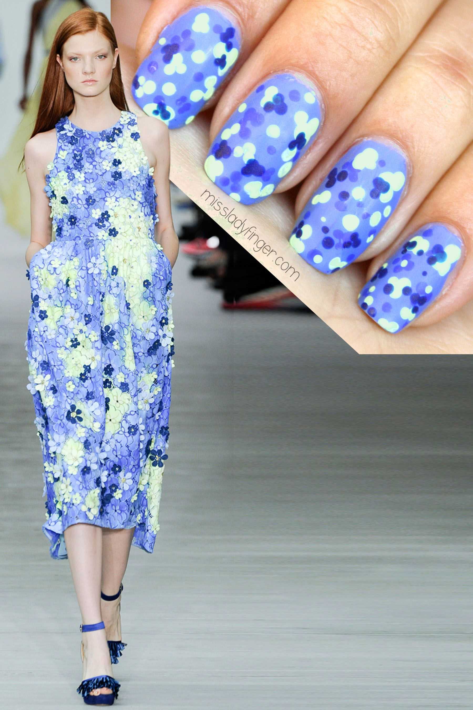 При выборе оттенка лака у вас есть множество вариантов: во-первых, вы можете руководствоваться принципом «тон-в-тон», что подразумевает использование лака того же оттенка, что и сам наряд.