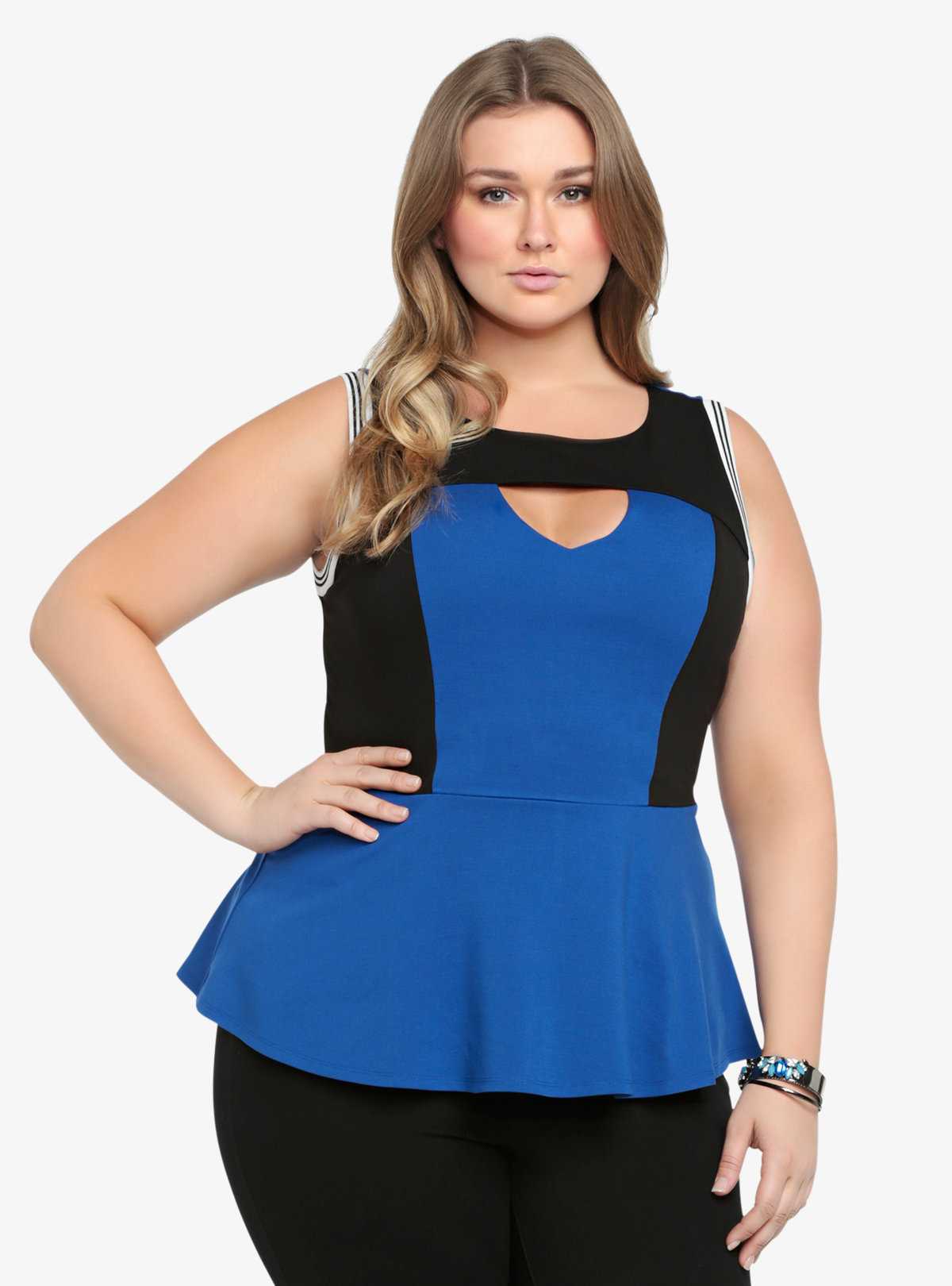 Если ваша фигура – груша, основная проблемная зона – это широкие бедра. Чтобы сбалансировать силуэт, носите модные блузки для полных с воланами в области плеч – верхняя часть силуэта станет визуально шире, а облегающий фасон позволит подчеркнуть характерную для грушевидной фигуры тонкую талию.