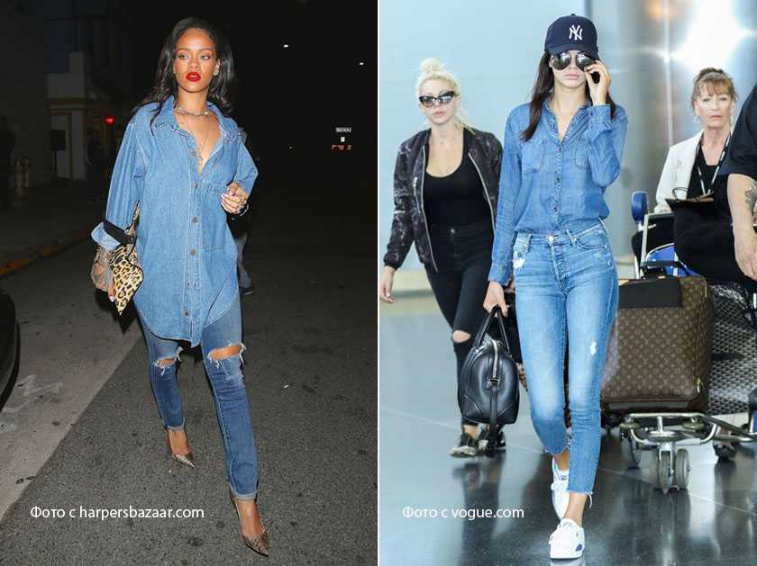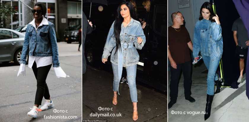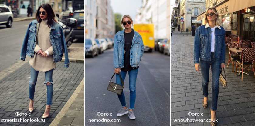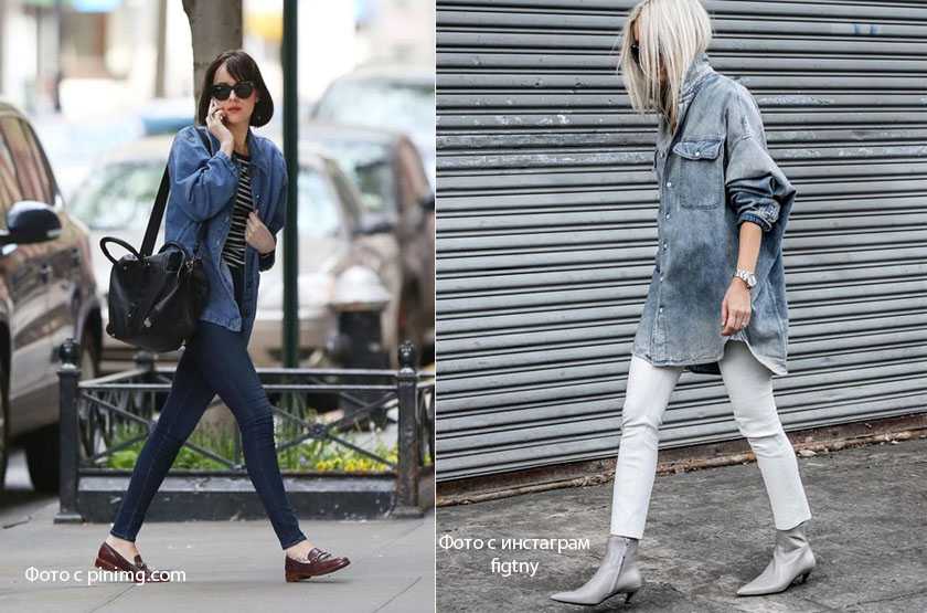 Джинсовка должна быть свободного объемного кроя, так как наша задача — компенсировать излишнее облегание скинни. Для того, чтобы образ казался более интересным, пользуемся приемом одного цвета, тем самым создавая вертикаль. Если ваша джинсовка недостаточной длины, наденьте под нее что-то удлиненное. Это может быть футболка, рубашка или свитер.