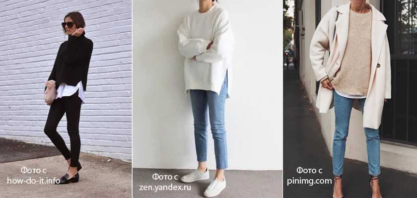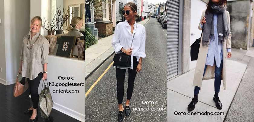 Для модного образа с облегающими брюками допустимо выбирать обувь не только на каблуке. Высокие девушки могут позволить себе разную обувь – стильные оксфорды, кроссовки, лоферы, слипоны.