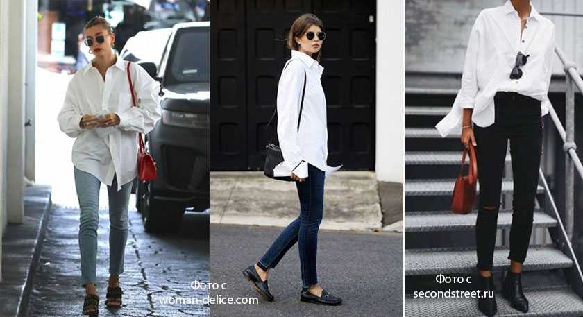 Выбираем рубашку свободного мужского кроя. Пожалуй, это самый простой способ. Закатайте рукава, расстегните несколько пуговиц сверху – так образ будет казаться легче. С каблуками вы будете более элегантной, с лоферами в стиле casual, с кроссовками – спортивной. Выбирать вам: под настроение и случай.
