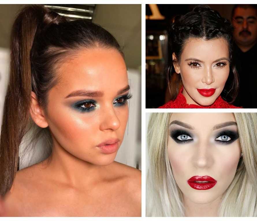 Есть несколько способов создания образа для праздника. Акцент делается на резко выраженные цвета. Независимо от внешнего вида, темным или кричащим тоном необходимо подчеркивать либо только губы или глаза на выбор. Вечерний макияж под черное платье может быть в трех вариантах: