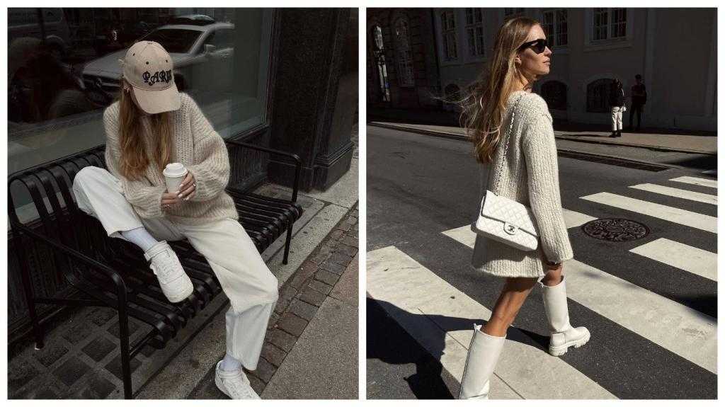 Модный блогер Перниль Тейсбек любит собирать образы в сдержанной гамме. К примеру, она сочетает кипенно-белые джинсы и молочный свитер. Не менее хороша серая, бежевая, коричневая гамма.