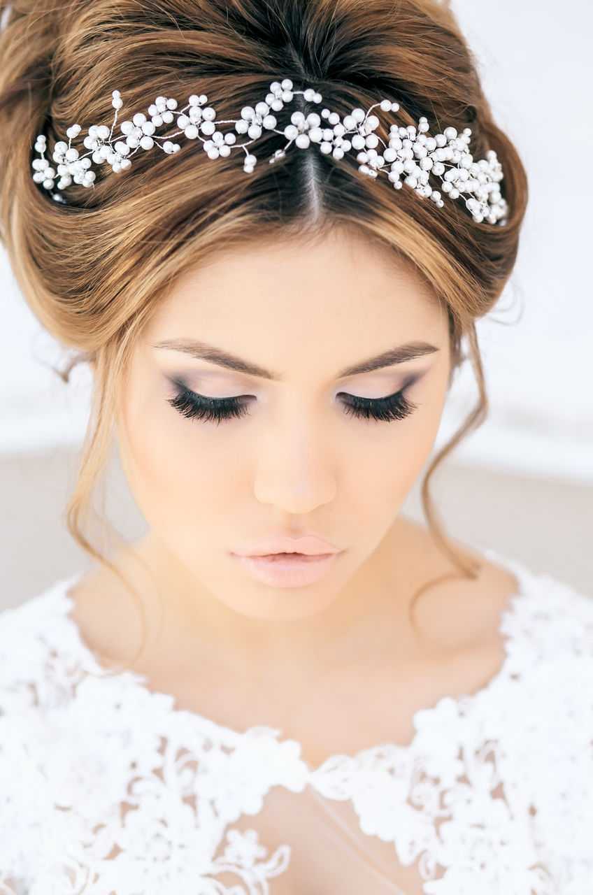 В этом случае полностью опираются на фасон платья. В первую очередь расставляют приоритеты, то есть на какой части свадебного туалета будут делать акцент.