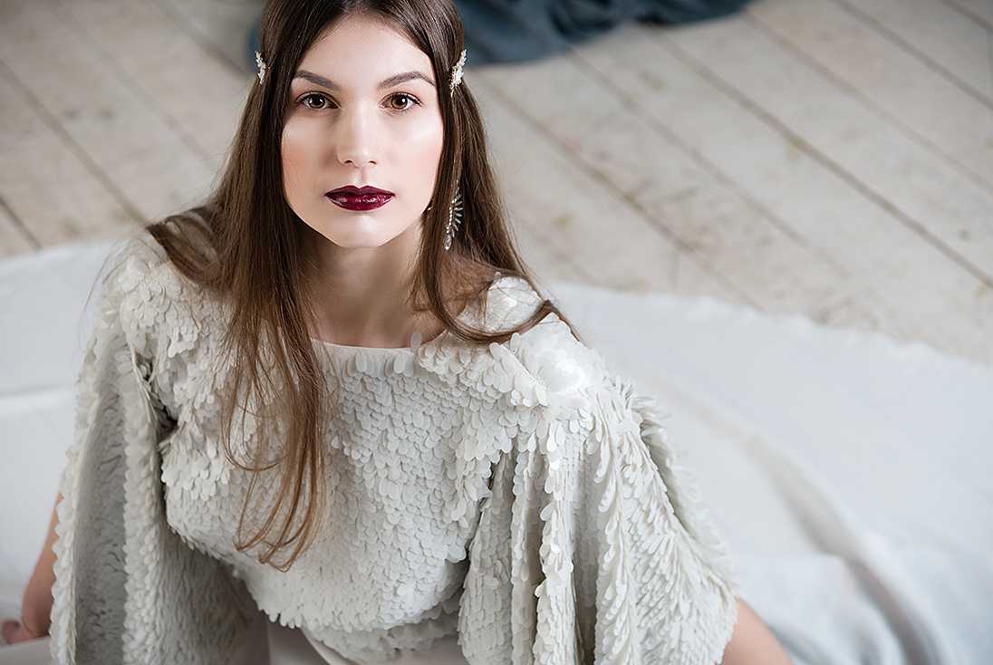 Стилисты часто украшают не только прически, тело покрывают переливающимися блестками. С подобным акцентом нужно проявлять внимательность, его не должно быть слишком много. Создавая прическу, откажитесь от массивных сооружений из волос. Нежно, легко выглядят укладки с цветочными венками, превращая девушку в лесную фею.