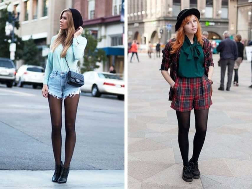 В период межсезонья, модницы не упускают случай надеть короткие шорты. А чтобы одежда смотрелась уместно, используют колготки различных цветов и оттенков, сочетая их с правильно подобранной обувью и аксессуарами.