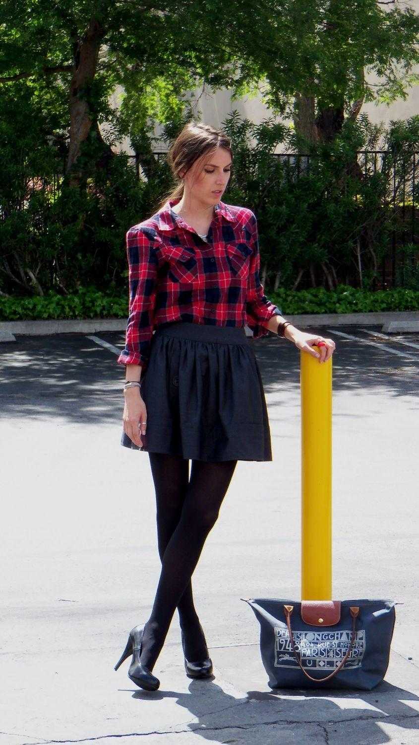 Для создания теплого уютного лука с клетчатой юбкой подойдет вязаный свитер, короткий кардиган или теплая кофта. Любите многослойность — оденьте майку и фланелевую рубашку, которую носите расстегнутой.
