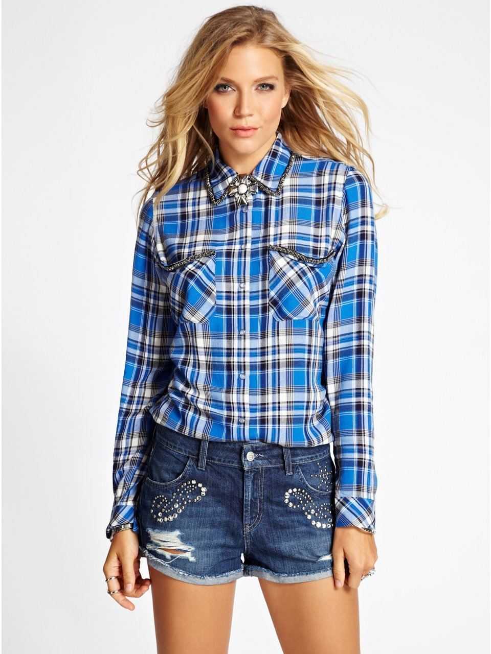 Если сочетать рубашку в клетку с джинсами и ботинками в мужском стиле, то получится настоящий ковбойский наряд, который и в условиях города будет выглядеть великолепно. Кроме этого клетчатую рубашку можно надевать с шортами, юбкой или брюками