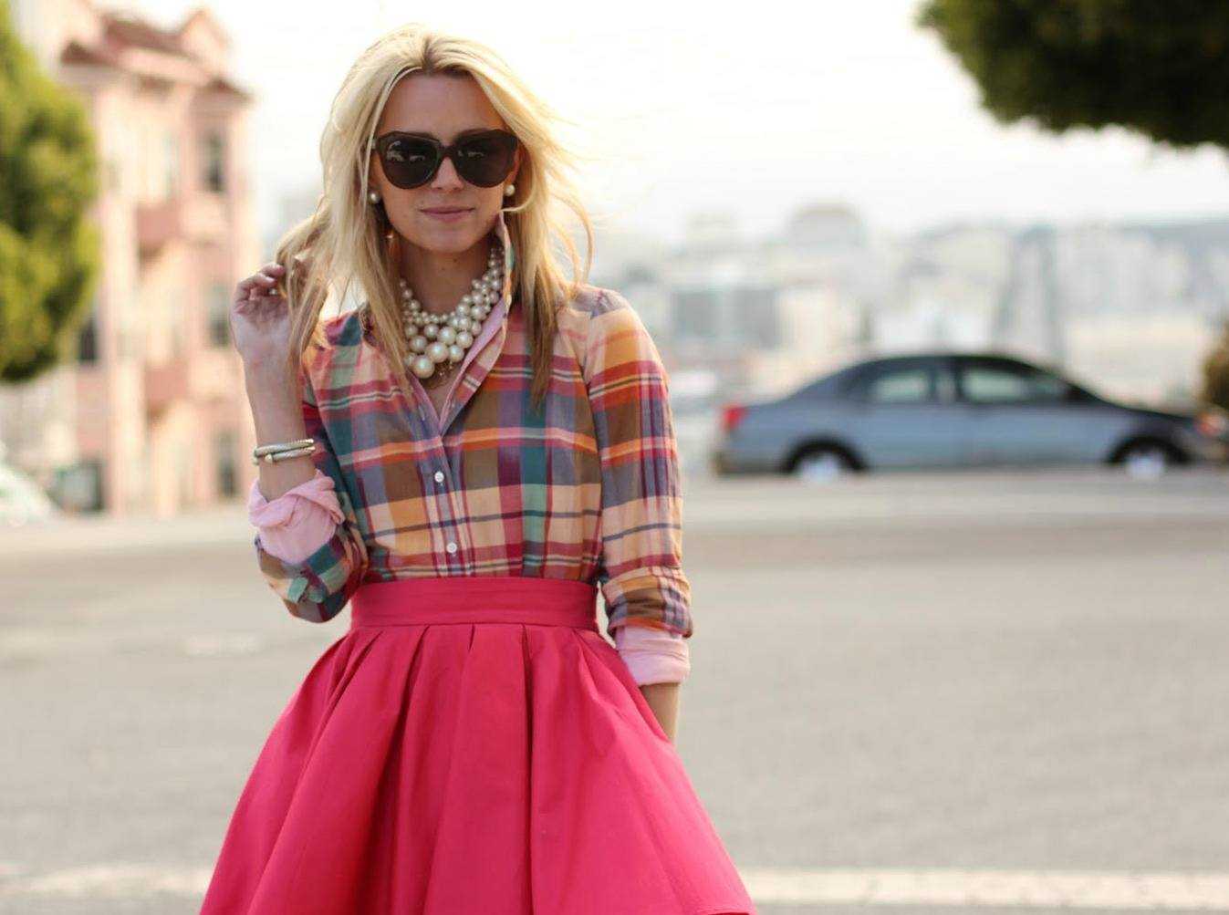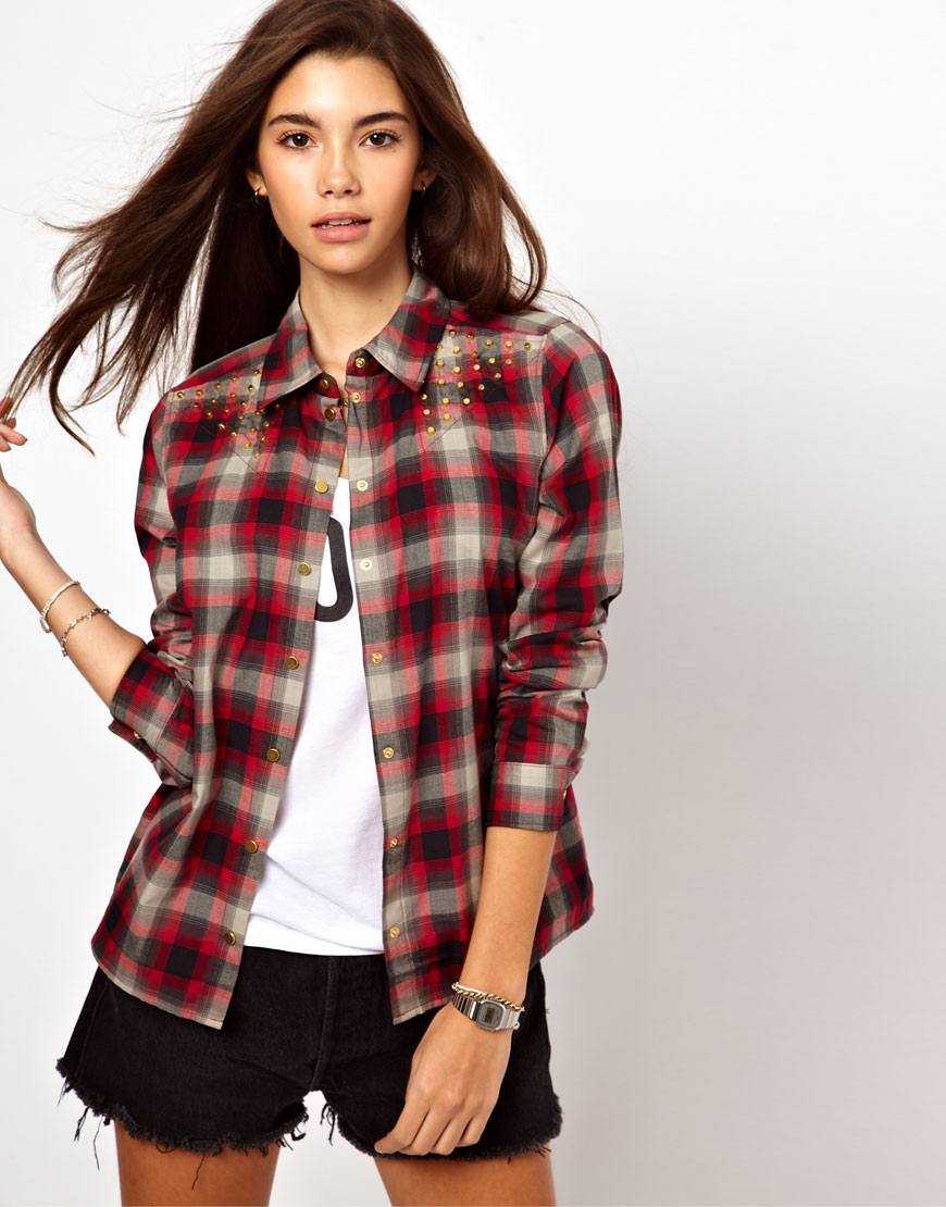 Особой любовью модниц в новом сезоне пользуются клетчатые рубашки. Это незаменимая одежда в гардеробе в стиле кантри или стритстайл. Помните, что одежду в мелкую клетку могут себе позволить только худенькие девушки. Крупный принт позволяет визуально скрыть недостатки фигуры, поэтому он незаменим для девушек с пышными формами.