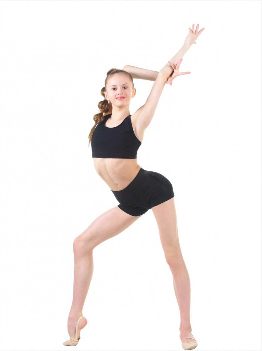 Короткие шортики оголяют часть подтянутых ягодиц, притягивая взгляды мужского пола.