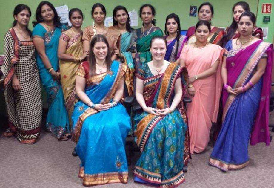 Сари носится не на голое тело, а поверх нижней юбки, соответствующей по цвету полотну сари. Так