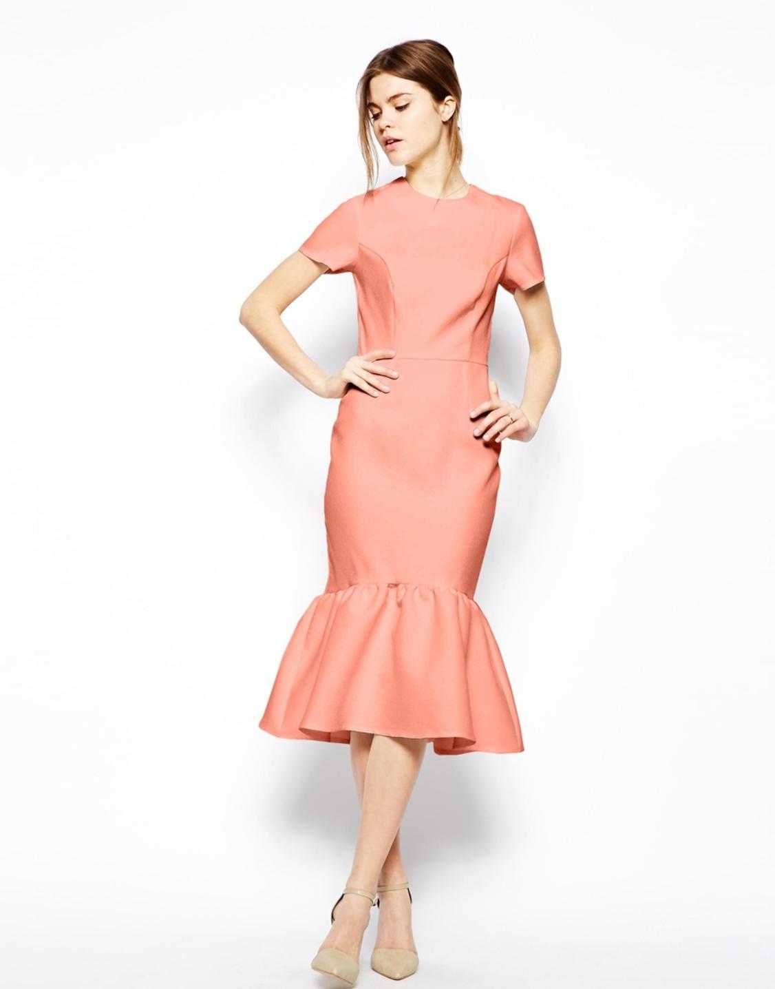 Стройные девушки, обладающие правильными пропорциями и тонкой талией, могут выбирать самые разные платья с баской, каждое из них будет идеально сидеть на хрупкой фигуре.