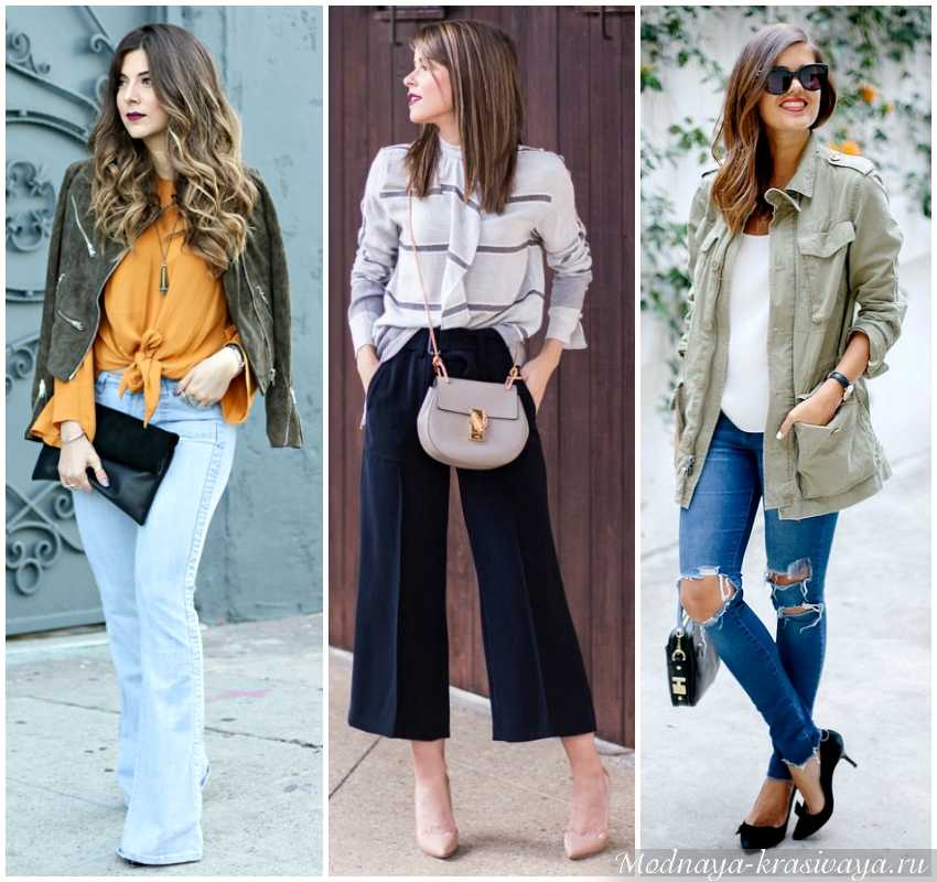 Широкие воротники, погоны, накладные карманы и воротники-стойки – создадут дополнительные акценты. Дополнят стильный лук брюки или джинсы прямого кроя в сочетании с обувью на низком ходу.