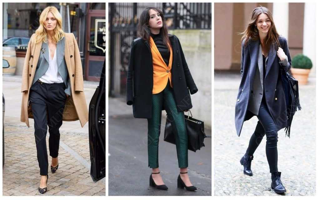Это может быть жакет, как часть комплекта с брючным костюмом, это может быть жакет в сочетании с джинсами, топом и пальто, с платьем и пальто, с рубашкой, трикотажем и пальто. Чем выше ваш рост и стройнее фигура, тем больше слоев одежды, деталей вы можете себе позволить. Кроме жакета вы можете смело сочетать пальто и бомбер! Бомбер отлично «ложится» под пальто и любую другую верхнюю одежду, т.к. у него нет жесткого плечевого пояса. В сочетании с элегантным пальто вы легко создадите острую, актуальную смесь спорта и элегантности.