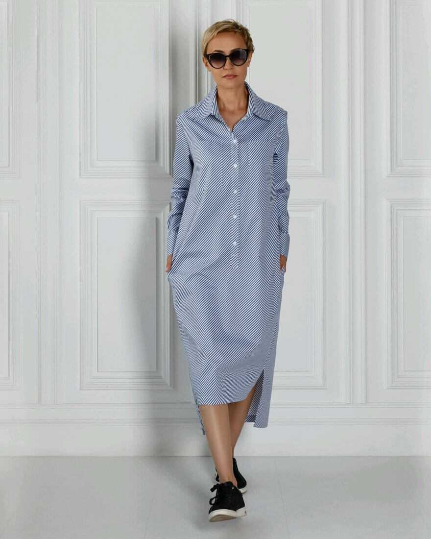 - Модели-рубашки не только очень удобны, но и неизменно актуальны. Такой тип кроя бал заимствован из мужского гардероба, что дополнительно подчеркивает женственность образа. Рубашечные платья для полных женщин идеальны, отлично в них смотрятся и девушки модельного телосложения. «Рубашки» бывают разными по стилю, многие из тех, кто предпочитает длинные платья на каждый день, выбирают преимущественно модели с пуговицами от ворота до талии, что делает такую вещь более комфортной и модной.