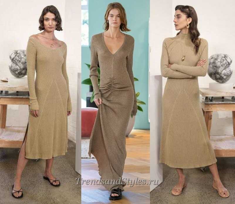 Посмотрите на фото стильных трикотажные платьев — 2022, их расцветки заслуживают особого внимания: