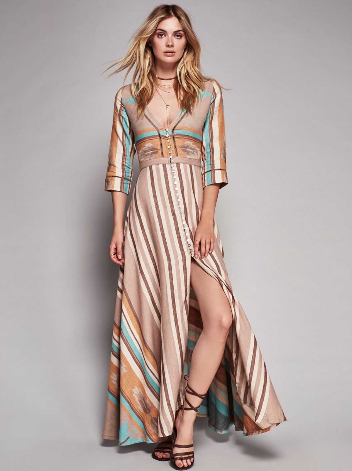 На жаркое лето идеальным вариантом являются длинные платья. Они могут быть с завышенной и с заниженной талией. Благодаря длине фигура выглядит стройнее. Платья спокойных расцветок станут хорошим нарядом для работы, а в ярких можно отправляться на прогулку.