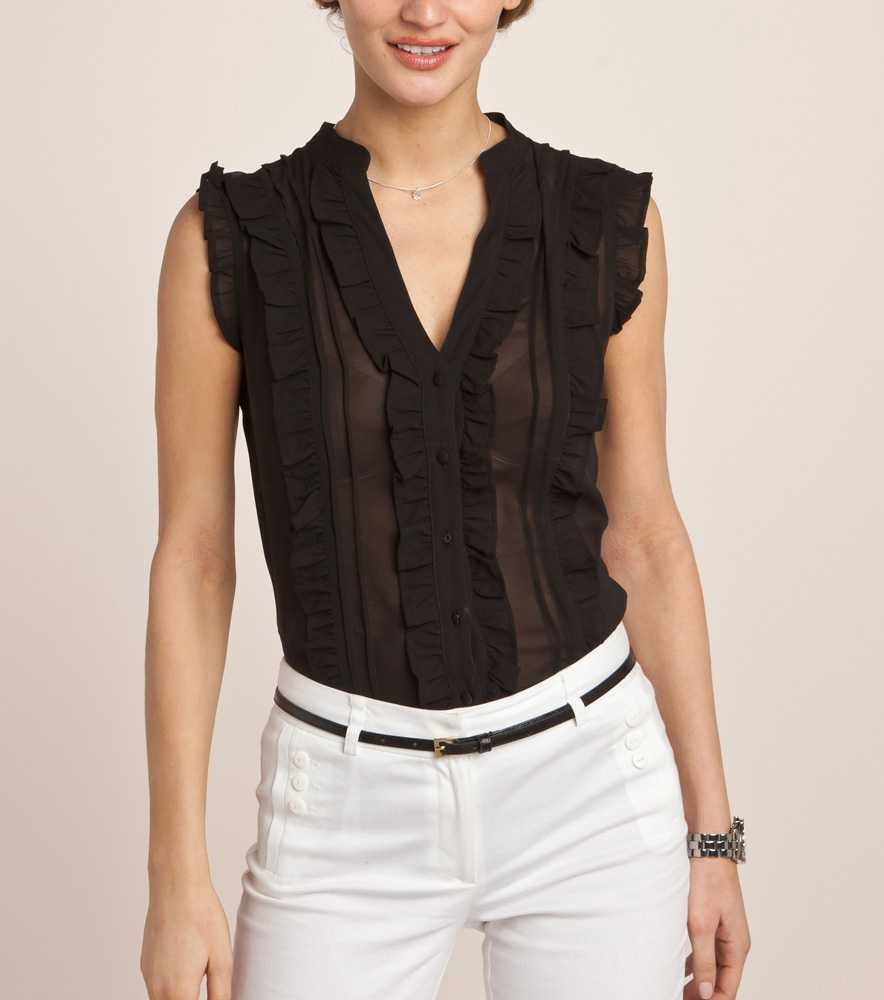 Лучше всего шифоновые блузки с воланами вписываются в романтичный стиль. Их можно сочетать с юбками-макси и лёгкими брюками. Также они подходят для офиса с нестрогим дресс-кодом.