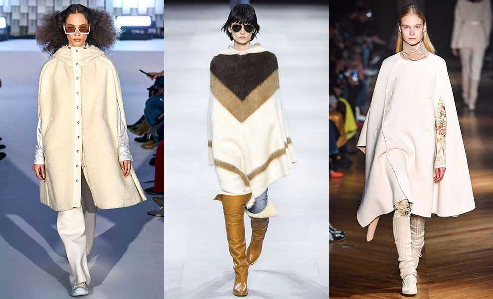 И писк сезона – объёмные, а-ля винтажные тренчи и плащи с откидной кокеткой, с интересными деталями, остаются модными пончо и кейпы.