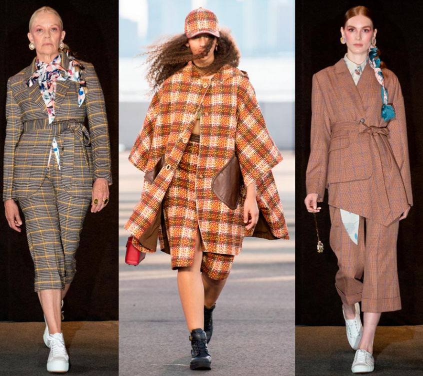 Юбочный костюм в клетку или с укороченными штанишками — понятный тренд.