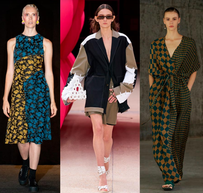 Колор-блок не только, как сочетание в образе вещей разных цветов, но и одно платье может быть пошито из ткани различного цвета. Не путаем колор-блок и пэчворк. Лоскутное шитье подразумевает ткань с принтом, колор-блок исключает принт.