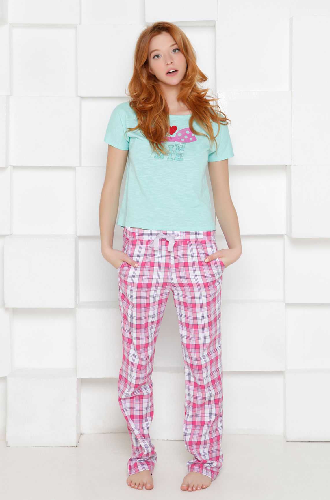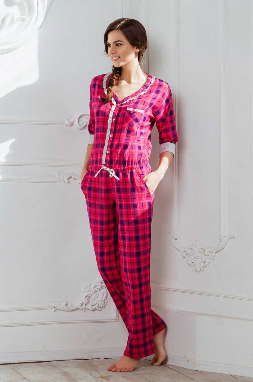 Клетчатые брюки считаются одними из самых популярных вариантов низа у ночной одежды. Верх может повторять основной рисунок, но чаще всего имеет однотонную расцветку. Брюки могут быть в виде лосин или клеш, но большим спросом пользуются прямые фасоны, которые меньше всего доставляют неудобств.