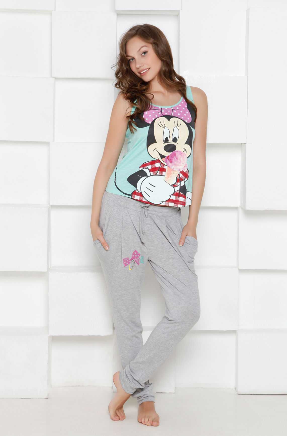 Это один из самых распространенных мультипликационных персонажей, который украшает пижамы. Чтобы добиться полного соответствия лучше приобрести красные шорты и черный джемпер, который будет декорирован мордочкой любимого героя. Рисунок по центру может иметь объемные ушки и популярный красный бант.