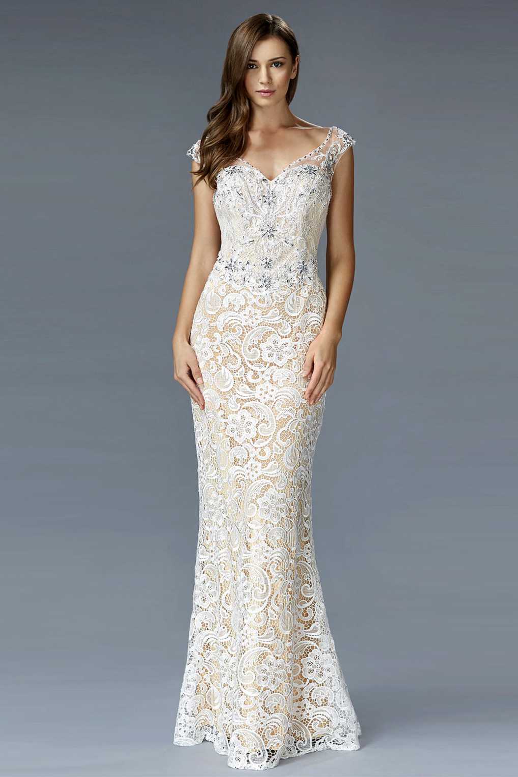 Свадебное платье с легким кружевом позволит вам выглядеть изящно. Волосы нужно убрать на затылке, собрав их в одну из вариаций пучка. Тонкие нити браслета и подвески допускаются лишь в серебре.
