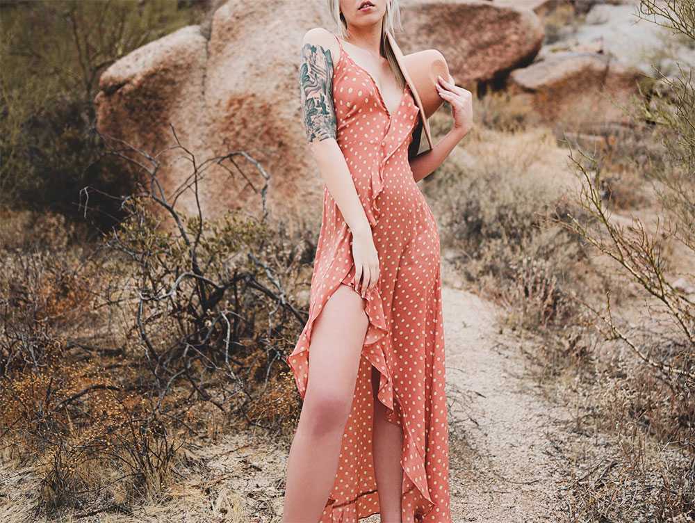 с высоким боковым разрезом – обладательницы стройных ног не хотят скрывать красоту под юбками макси, поэтому выбирают «Крестьянку» с высоким боковым разрезом. Изделие выглядит провокационно и больше подходит для круизного лука или отдыха на морском побережье. Но и в летнем городском аутфите для подобного наряда найдется место;