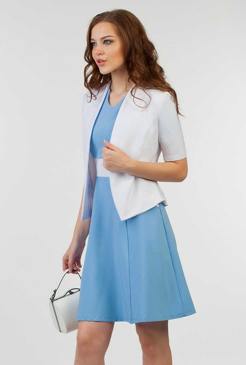 Для создания офисного лука можно выбирать голубое платье с цветами или простое однотонное. Главное – правильно подобрать гамму остальных предметов гардероба, чтобы не выглядеть слишком броско. Никаких мини-юбок, глубоких декольте, высоких разрезов – это стоит оставить для прогулок