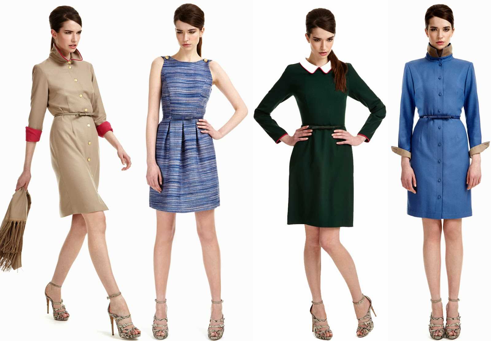 - Платья разнообразных фасонов и расцветок длиной до середины колена или ниже.