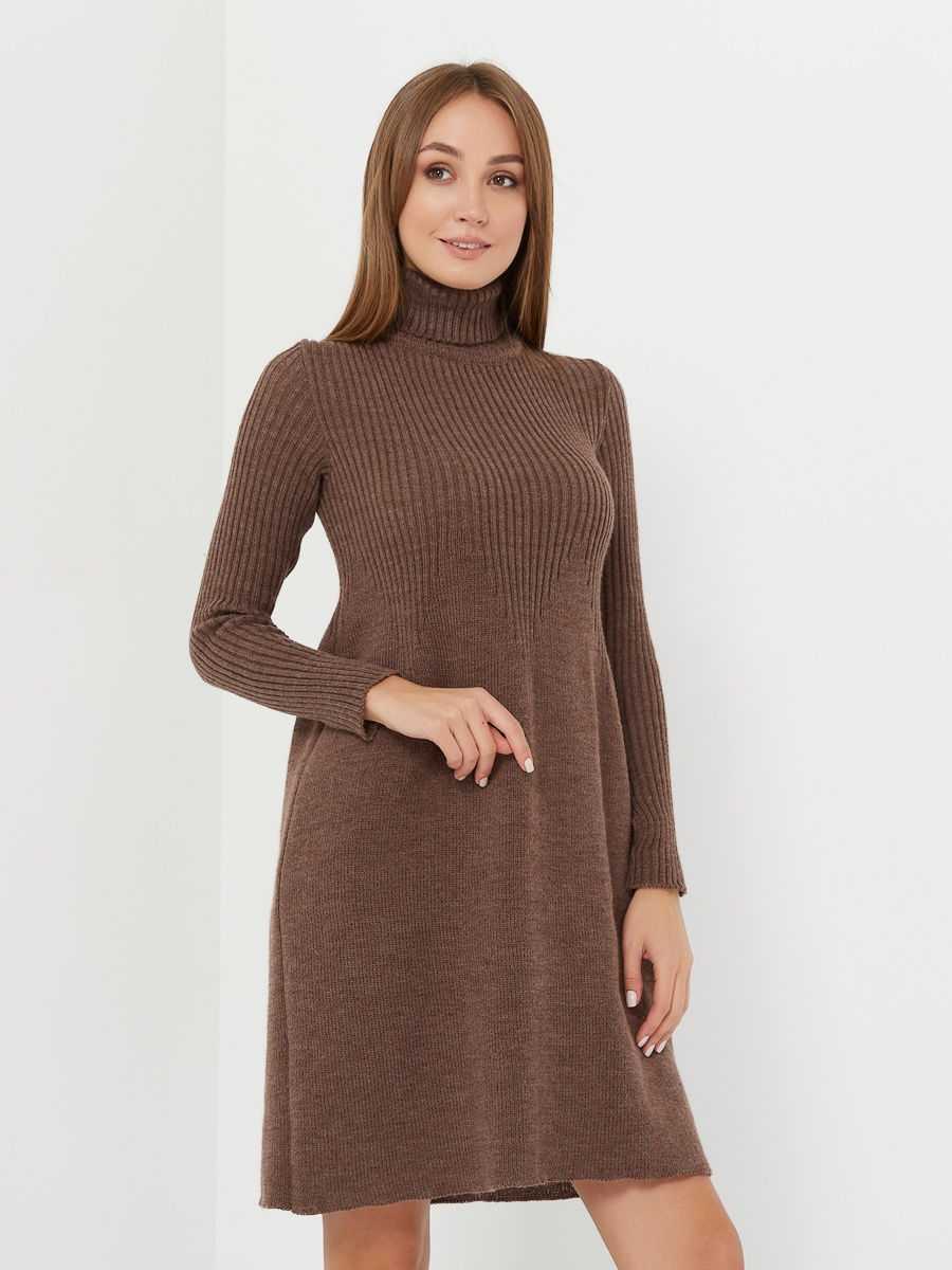 - Также заслуживают внимания трикотажные платья из трикотажа длиной чуть ниже колена в комплекте с ботинками на каблуке.