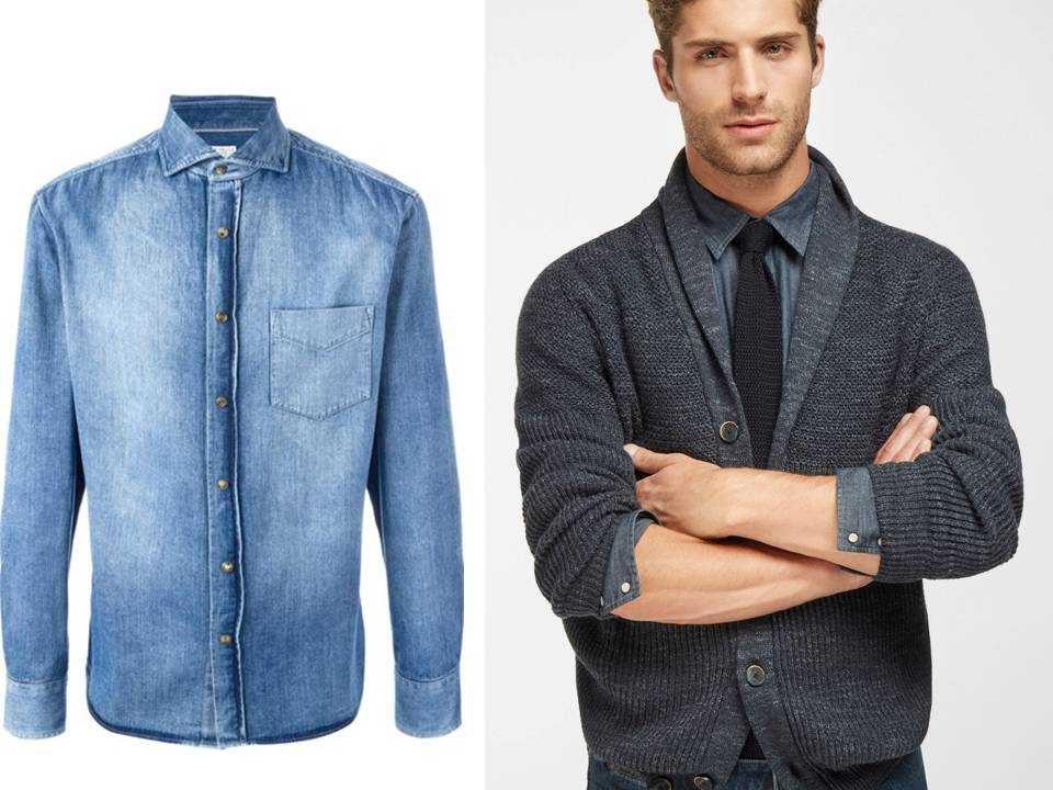Под костюм они не подходят, а вот с брюками, пуловером или под кардиган будет прекрасно. Сейчас также в ходу джинсовая рубашка в качестве основной – ее носят и с галстуком, и с костюмом, и под блейзер. Но только не с джинсовыми брюками!