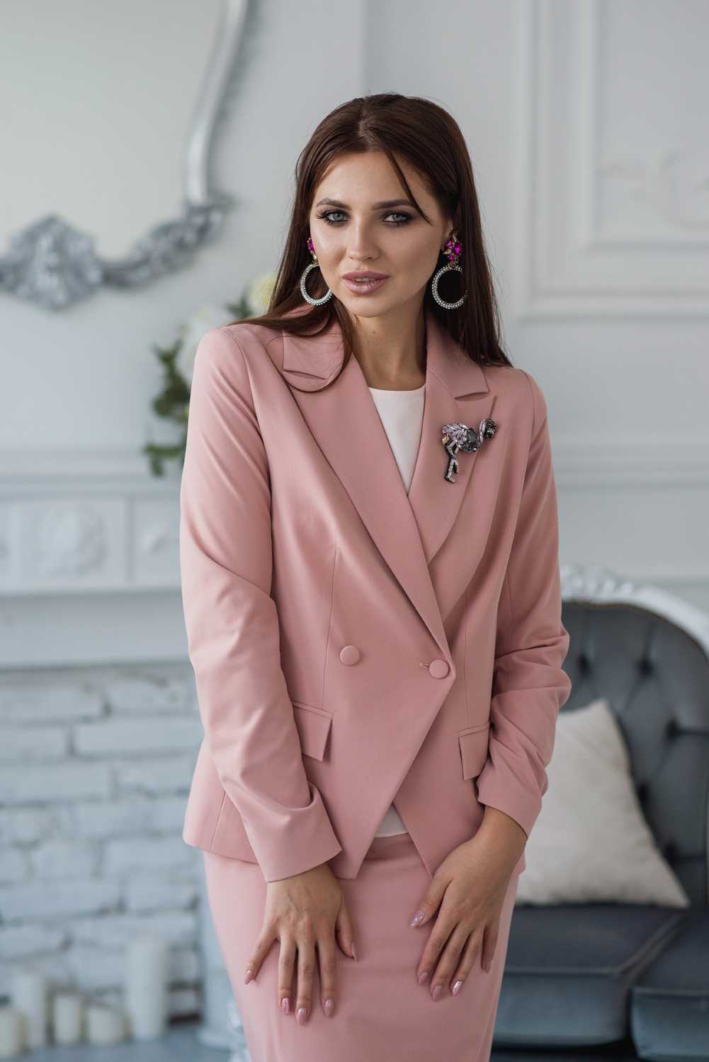 Розовый жакет бывает разным по фасону. Он может иметь длинный или короткий рукав, широкий или приталенный силуэт. Создать подходящий лук помогут такие изделия: