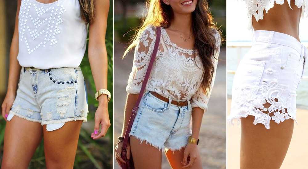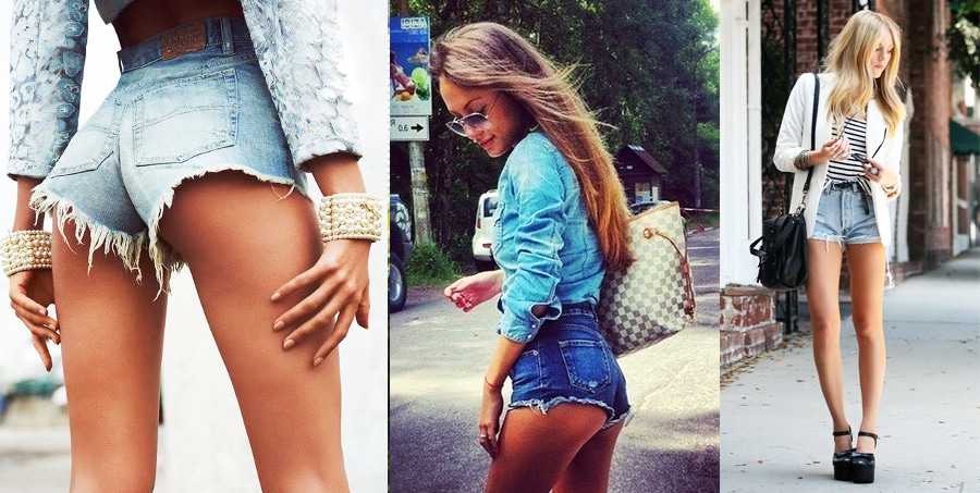 Модные шорты из денима прекрасно сочетаются с черными колготками, леггинсами, актуальны в летом и осенью. Прекрасно смотрятся с теплым жилетом, ботинками мехом наружу, унтами, дубленкой.