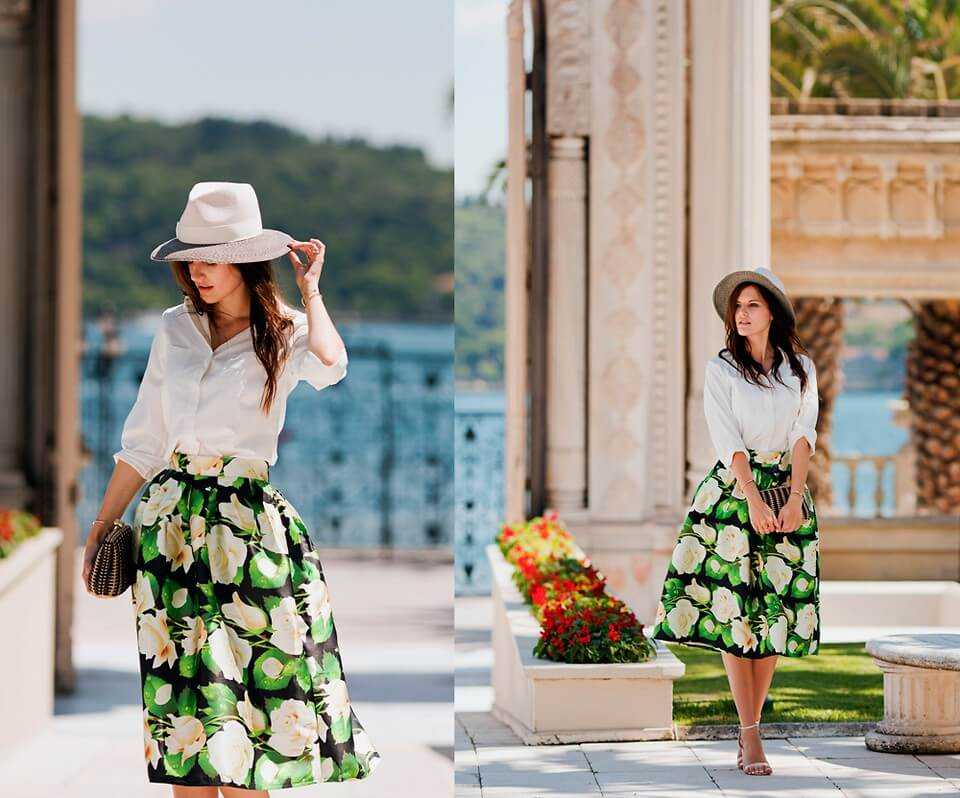 Женственные и романтичные образы получаются с рубашкой и юбкой-миди. Добавьте минималистичные босоножки и шляпку и отправляйтесь на свидание с любимым!