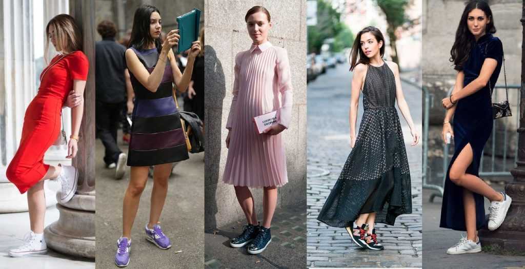 Вариантов сочетания спортивной обуви с платьями огромное множество, и они никак не ограничиваются ни силуэтом, ни даже стилем. В создании таких ансамблей главное – это все же не бояться экспериментировать и вдохновляться отличными идеями именитых дизайнеров.